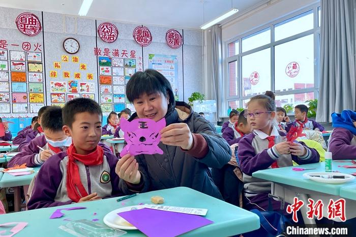 馬恒燕與學(xué)生共上剪紙課。 李佩珊 攝