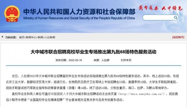高校迎來畢業(yè)季。教育部從5月開始到8月中旬,開展高校畢業(yè)生就業(yè)“百日沖刺”系列活動,多措并舉促進2022屆高校畢業(yè)生更加充分更高質(zhì)量就業(yè)。此外,人力資源和社會保障部、教育部等部門聯(lián)合各大網(wǎng)絡平臺組織了一系列招聘活動↓↓