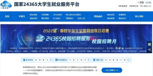 近日,教育部聯(lián)合地方、高校以及社會知名招聘網(wǎng)站共同開展“2022屆高校畢業(yè)生全國網(wǎng)絡聯(lián)合招聘——24365校園招聘服務”,為高校畢業(yè)生提供每天24小時全年365天的網(wǎng)上校園招聘服務,促進高校畢業(yè)生就業(yè)。高校畢業(yè)生和用人單位可通過國家24365大學生就業(yè)服務平臺查詢相關信息。