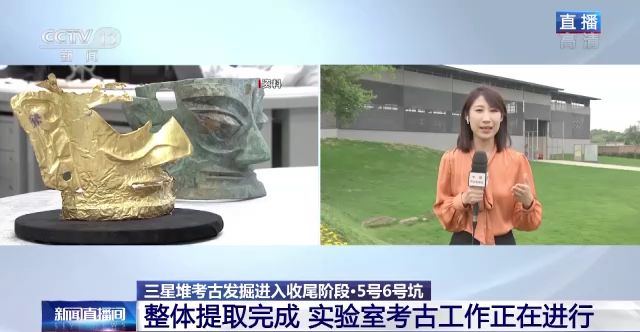 總臺央視記者 任梅梅:5號坑和6號坑都已經(jīng)完成了整體提取工作?!敖鸸忾W閃”的5號坑,曾經(jīng)發(fā)現(xiàn)了大量金器,比如金面具、鳥形金飾片、有孔的圓形金箔片、斧形金器、小金珠等??紤]到5號坑里的器物非常細碎,考古隊員對5號坑進行整體打包,目前已經(jīng)整體提取到文保中心,正在開展實驗室考古。