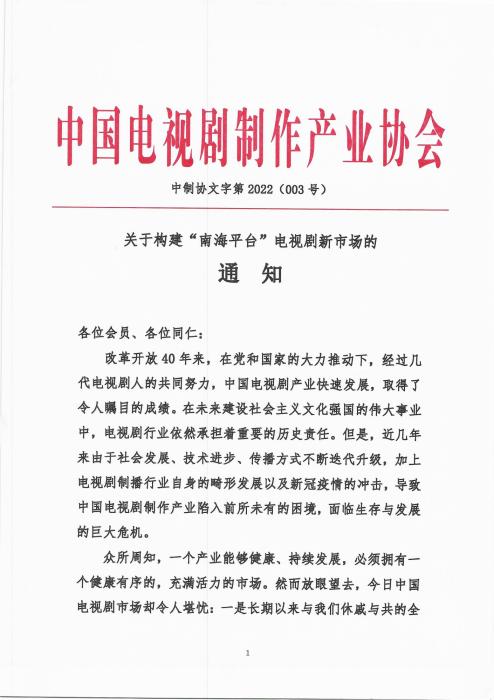 中新網北京6月23日電 記者從中國電視劇制作產業(yè)協(xié)會了解到,中制協(xié)于6月22日發(fā)布《關于構建“南海平臺”電視劇新市場的通知》。通知顯示,“南海平臺”計劃將于今年四季度以經典老劇免費試鏈運行,年底擬首輪劇獨家上鏈運營,正式推出。
