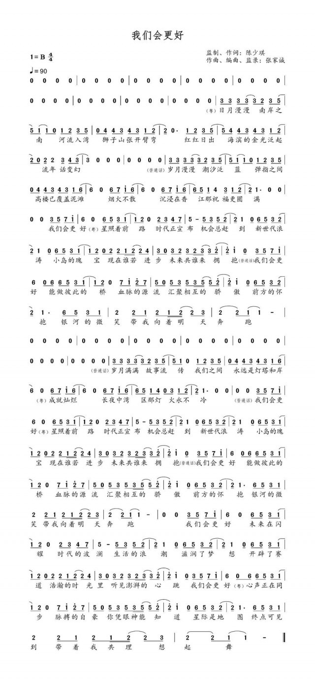 中央廣播電視總臺策劃制作的慶祝香港回歸祖國25周年主題歌曲《我們會更好》普通話粵語融合版本、粵語版本近日重磅發(fā)布上線。目前話題閱讀1.3億,播放超1300萬。香港著名音樂人陳少琪任制作人及作詞,張家誠作曲,香港歌手容祖兒、陳偉霆和內地歌手譚維維、孫楠聯(lián)袂演唱。