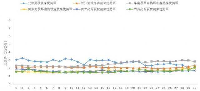 圖2 2022年6月全國蔬菜優(yōu)勢區(qū)地頭價(jià)走勢圖