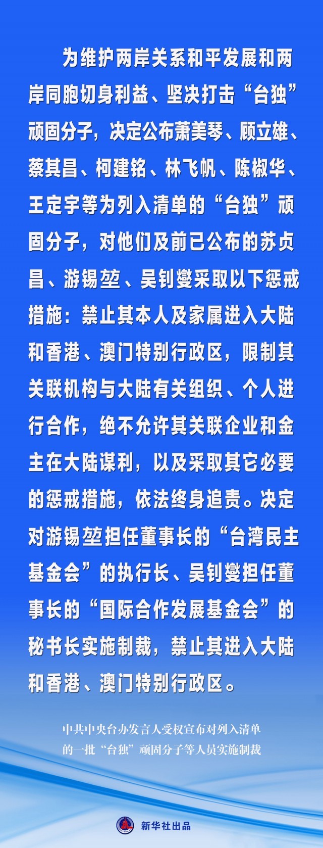 海報(bào)丨中共中央臺(tái)辦發(fā)言人受權(quán)宣布對(duì)列入清單的一批“臺(tái)獨(dú)”頑固分子等人員實(shí)施制裁