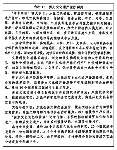樹牢保護(hù)歷史文化遺產(chǎn)責(zé)任重大的觀念,增強(qiáng)對(duì)歷史文物的敬畏之心。全面加強(qiáng)考古工作,健全“先考古、后出讓”制度。加強(qiáng)文物科技創(chuàng)新。統(tǒng)籌指導(dǎo)各類文物資源普查和名錄公布,編制文物保護(hù)單位保護(hù)規(guī)劃等專項(xiàng)規(guī)劃,納入國土空間規(guī)劃實(shí)施。推進(jìn)世界文化遺產(chǎn)申報(bào)、保護(hù)管理和展示宣傳。加強(qiáng)不可移動(dòng)文物和館藏文物保護(hù)修復(fù)。加大流失文物追索返還工作力度。推進(jìn)文物合理利用,建設(shè)國家考古遺址公園、文物保護(hù)利用示范區(qū)、文化遺產(chǎn)廊道,推介以文物資源為載體的國家文化地標(biāo)和中華文明標(biāo)識(shí)體系。實(shí)施中華文物全媒體傳播計(jì)劃。健全文物安全長(zhǎng)效機(jī)制,嚴(yán)厲打擊文物犯罪。