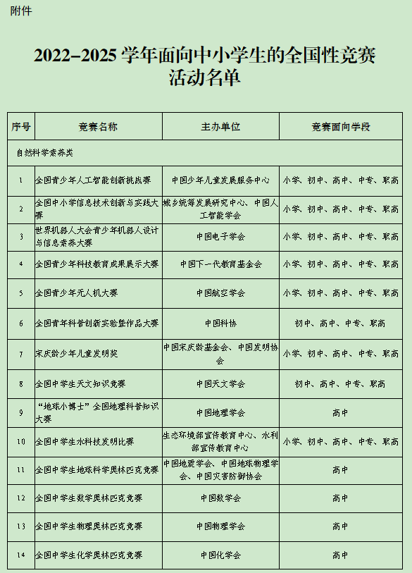 教育部公示2022-2025學(xué)年面向中小學(xué)生的45項(xiàng)全國(guó)性競(jìng)賽活動(dòng)名單
