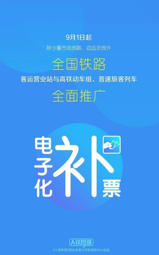 9月1日起,除少量市郊線路、邊遠支線外,全國鐵路客運營業(yè)站與高鐵動車組、普速旅客列車全面推廣電子化補票。