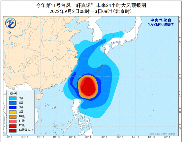 大風(fēng)預(yù)報:9月2日08時至3日08時,巴士海峽、臺灣海峽、臺灣以東洋面、東海大部及釣魚島附近海域、長江口區(qū)、杭州灣,以及臺灣島北部和東部沿海、福建中北部沿海、浙江沿海、上海沿海、江蘇南部沿海將有6-8級大風(fēng),陣風(fēng)9-10級,其中臺灣以東洋面的風(fēng)力有9-12級,陣風(fēng)11-15級,“軒嵐諾”中心經(jīng)過的附近海面的風(fēng)力有13-15級,陣風(fēng)可達16-17級。