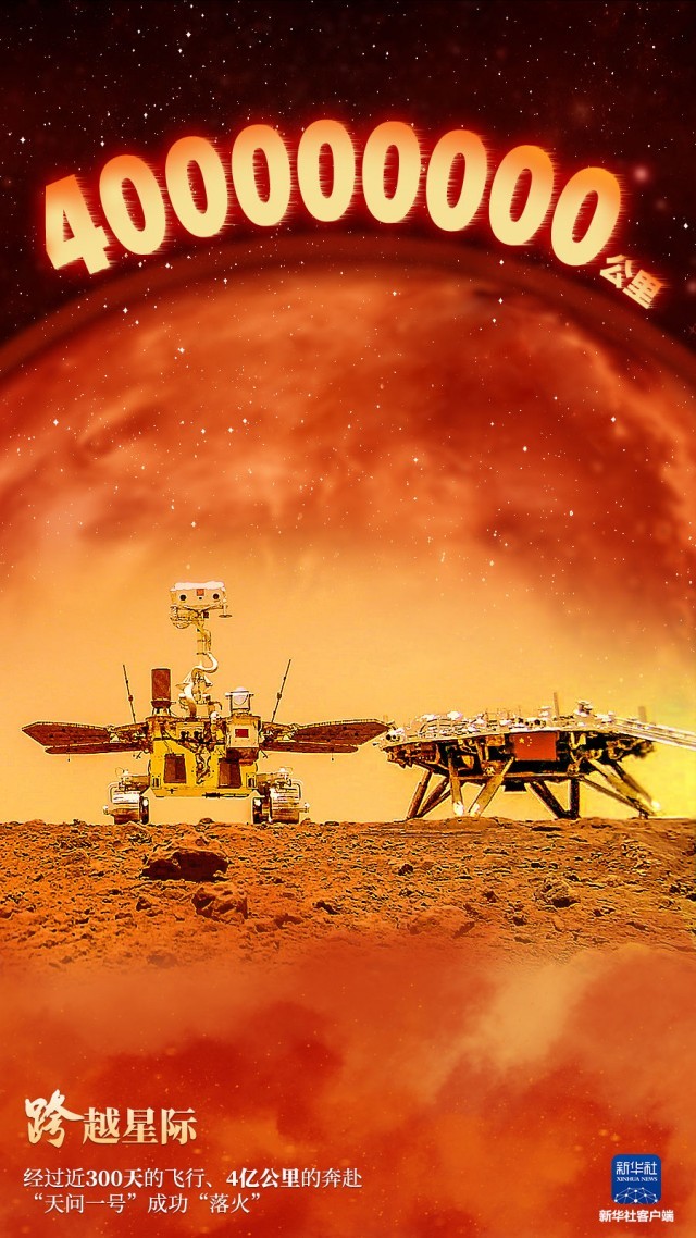 經過近300天的飛行、4億公里的奔赴,“天問一號”成功“落火”;