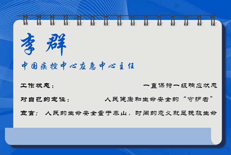 2019年12月31日一早,李群隨中國疾控中心工作組趕赴武漢,同時(shí)作為國家衛(wèi)生健康委專家組成員參加工作。他參加制定了《武漢不明原因的病毒性肺炎密切接觸者管理方案》和《應(yīng)急監(jiān)測(cè)方案》。他提出的對(duì)密接人員進(jìn)行14天醫(yī)學(xué)觀察,此后成為密接人員管理的通用做法。