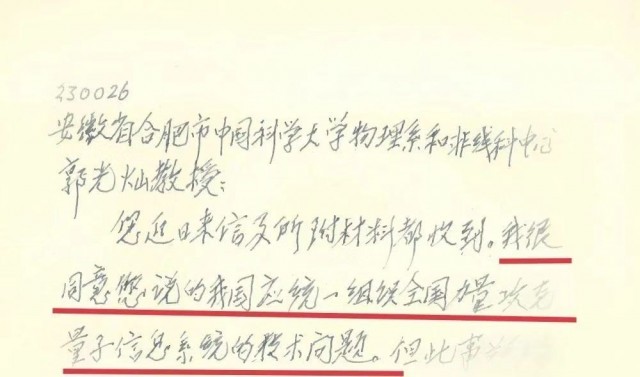 信中寫道:“我很同意您說的我國應(yīng)統(tǒng)一組織全國力量攻克量子信息系統(tǒng)的技術(shù)問題?!薄按耸玛P(guān)系到國家大事”,還就如何“組織全國力量”表達(dá)了看法。