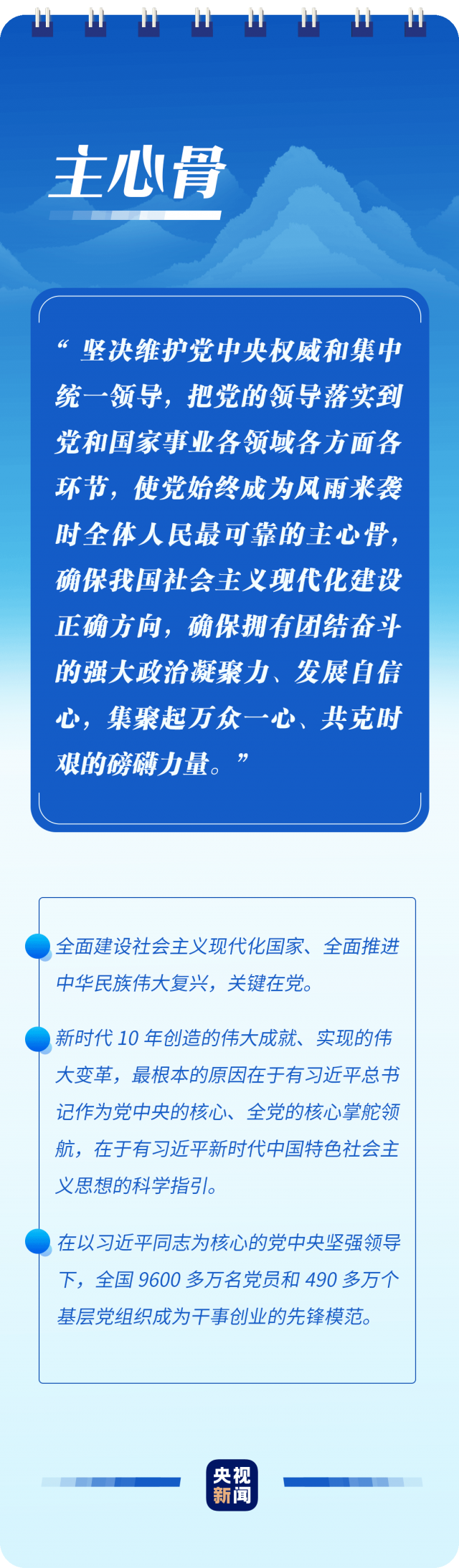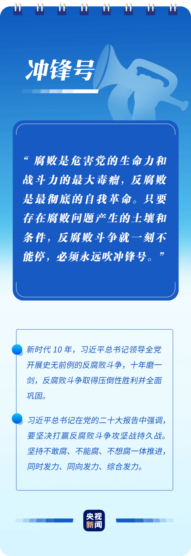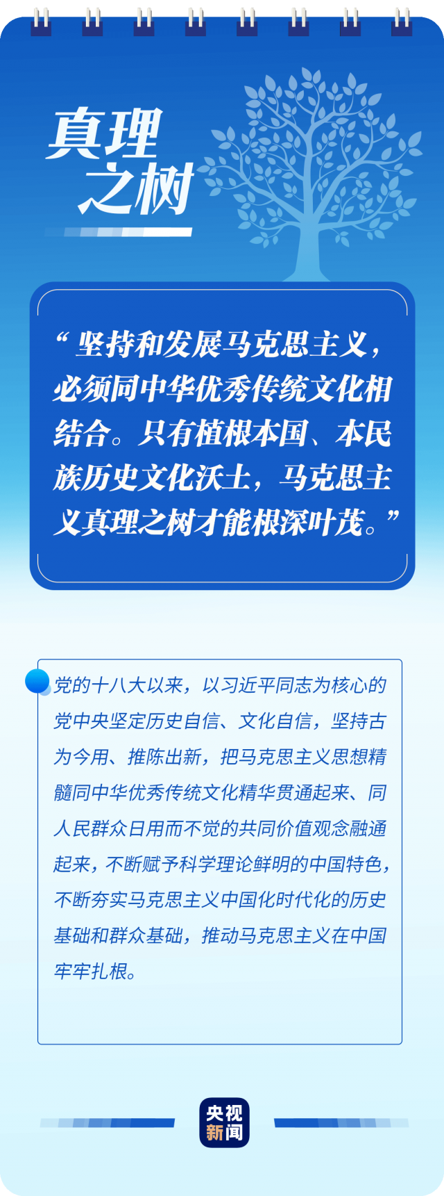 “只有植根本國、本民族歷史文化沃土,馬克思主義真理之樹才能根深葉茂”“使黨始終成為風(fēng)雨來襲時(shí)全體人民最可靠的主心骨”“只要存在腐敗問題產(chǎn)生的土壤和條件,反腐敗斗爭就一刻不能停,必須永遠(yuǎn)吹沖鋒號”……