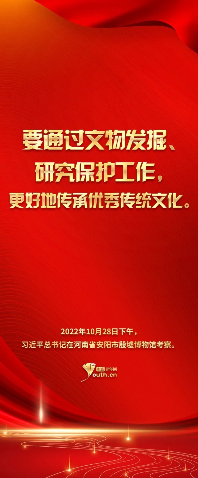 黨的十八大以來,習(xí)近平總書記高度重視包括殷墟在內(nèi)的考古事業(yè)的發(fā)展,認為考古工作是一項重要文化事業(yè),也是一項具有重大社會政治意義的工作。百年來的考古發(fā)現(xiàn)展示了中華文明起源和發(fā)展的歷史脈絡(luò),展示了中華文明的燦爛成就,也展示了中華文明對世界文明的重大貢獻??梢哉f,考古工作事關(guān)文化自信,事關(guān)中華優(yōu)秀傳統(tǒng)文化傳承創(chuàng)新。殷墟是中國近代考古學(xué)的搖籃,出土的甲骨文是我國今天已知的最早的成熟文字系統(tǒng),把中華民族的信史向上推進了約1000年,甲骨文的重大發(fā)現(xiàn)在中華文明乃至人類文明發(fā)展史上具有劃時代的意義。2019年11月1日,習(xí)近平總書記在致甲骨文發(fā)現(xiàn)和研究120周年的賀信中要求,“新形勢下,要確保甲骨文等古文字研究有人做、有傳承”,對殷墟考古發(fā)掘和甲骨文傳承創(chuàng)新寄予殷切期望。