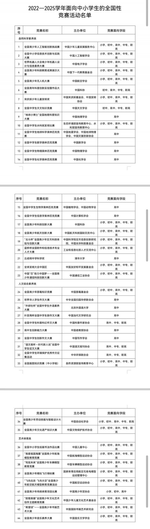教育部公布44項(xiàng)中小學(xué)生全國(guó)性競(jìng)賽活動(dòng)名單