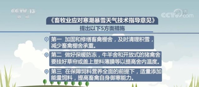 央視網(wǎng)消息:記者12月1日從農(nóng)業(yè)農(nóng)村部了解到,為了應(yīng)對(duì)寒潮天氣,保障畜禽安全過冬,最大程度降低災(zāi)害損失,農(nóng)業(yè)農(nóng)村部畜牧獸醫(yī)局組織畜牧生產(chǎn)專家編制了《畜牧業(yè)應(yīng)對(duì)寒潮暴雪天氣技術(shù)指導(dǎo)意見》,提出5方面措施指導(dǎo)生產(chǎn)。