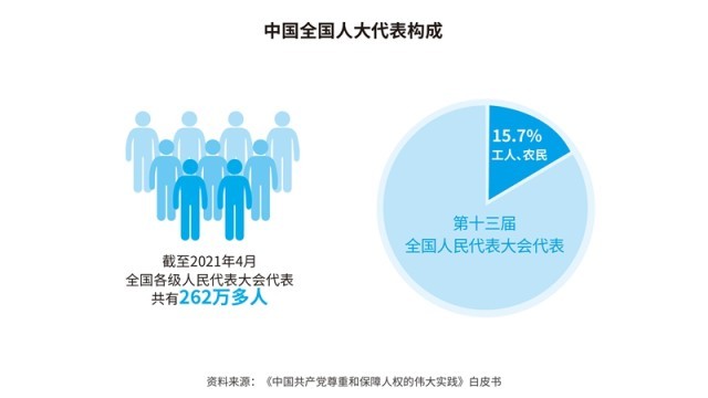 中國從本國國情實際出發(fā),不斷發(fā)展全過程人民民主,完善人民當家作主制度體系,建立了人民代表大會制度、中國共產黨領導的多黨合作和政治協(xié)商制度、民族區(qū)域自治制度和基層群眾自治制度,為人民享有更加廣泛、更加充分、更加全面的民主權利奠定了堅實的制度基礎。
