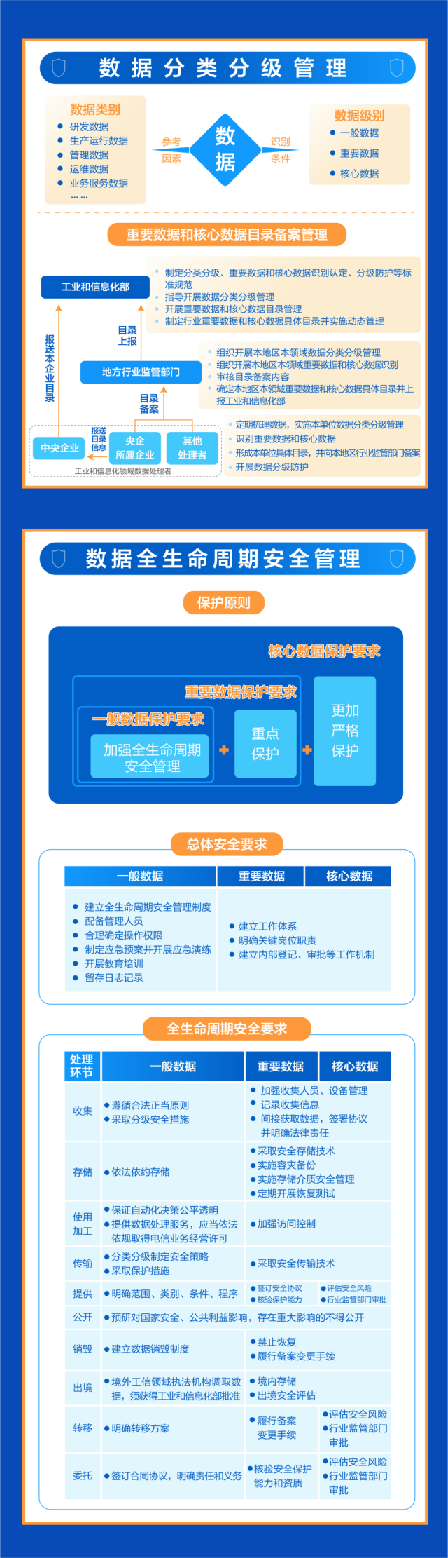 《管理辦法》以數(shù)據(jù)分級保護(hù)為總體原則,要求一般數(shù)據(jù)加強(qiáng)全生命周期安全管理,重要數(shù)據(jù)在一般數(shù)據(jù)保護(hù)的基礎(chǔ)上進(jìn)行重點保護(hù),核心數(shù)據(jù)在重要數(shù)據(jù)保護(hù)的基礎(chǔ)上實施更加嚴(yán)格保護(hù)。對于不同級別數(shù)據(jù)同時被處理且難以分別采取保護(hù)措施的,采取“就高”原則,按照其中級別最高的要求實施保護(hù)。