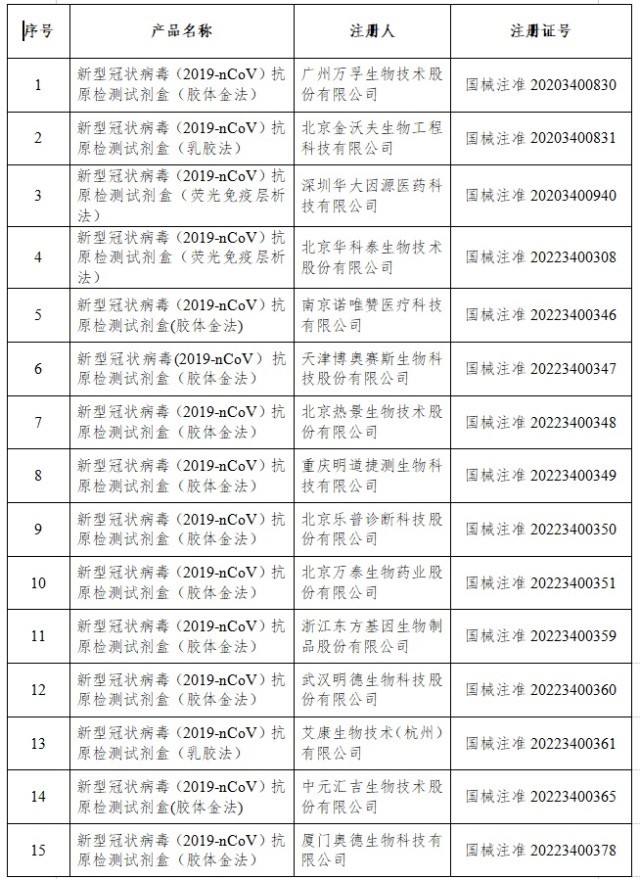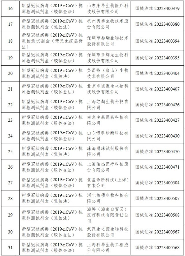 12月22日,經(jīng)國家藥監(jiān)局審查,批準(zhǔn)艾維可生物科技有限公司和邁克生物股份有限公司的2個新冠病毒抗原檢測試劑產(chǎn)品。截至目前,國家藥監(jiān)局已批準(zhǔn)44個新冠病毒抗原檢測試劑產(chǎn)品。