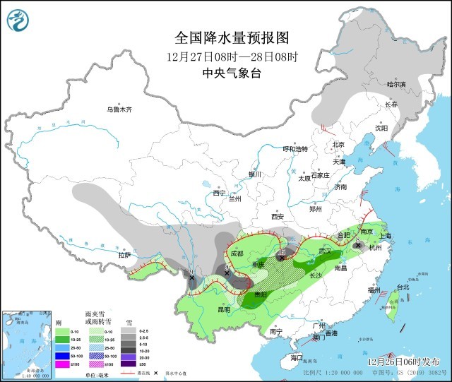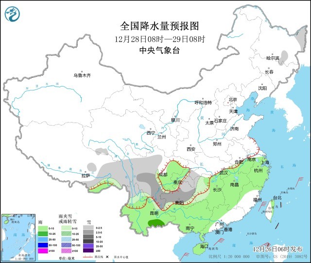 預(yù)計(jì)今天夜間至29日,南方地區(qū)將出現(xiàn)一次雨雪天氣過(guò)程,西藏東部、云南北部、川西高原、重慶東南部、貴州、湖南西部、湖北西部、安徽南部、浙江西北部等地將有小到中雪或雨夾雪,貴州中部和東部、湖南西部局地大到暴雪,貴州西部局地有凍雨;四川盆地、云南中南部、湖南南部、江西大部、浙江大部、福建北部以及廣西、廣東北部等地有小雨,局地中雨;主要降水時(shí)段為27日至28日。