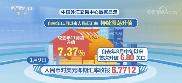 從去年底到今年開年至今,人民幣匯率走出了一波反彈回升行情。中國外匯交易中心數(shù)據(jù)顯示,自去年11月以來人民幣匯率持續(xù)震蕩升值。1月9日人民幣對(duì)美元即期匯率收?qǐng)?bào)6.7712,較去年11月初升值7.37%,也是自去年8月中旬以來首次升破6.80關(guān)口。