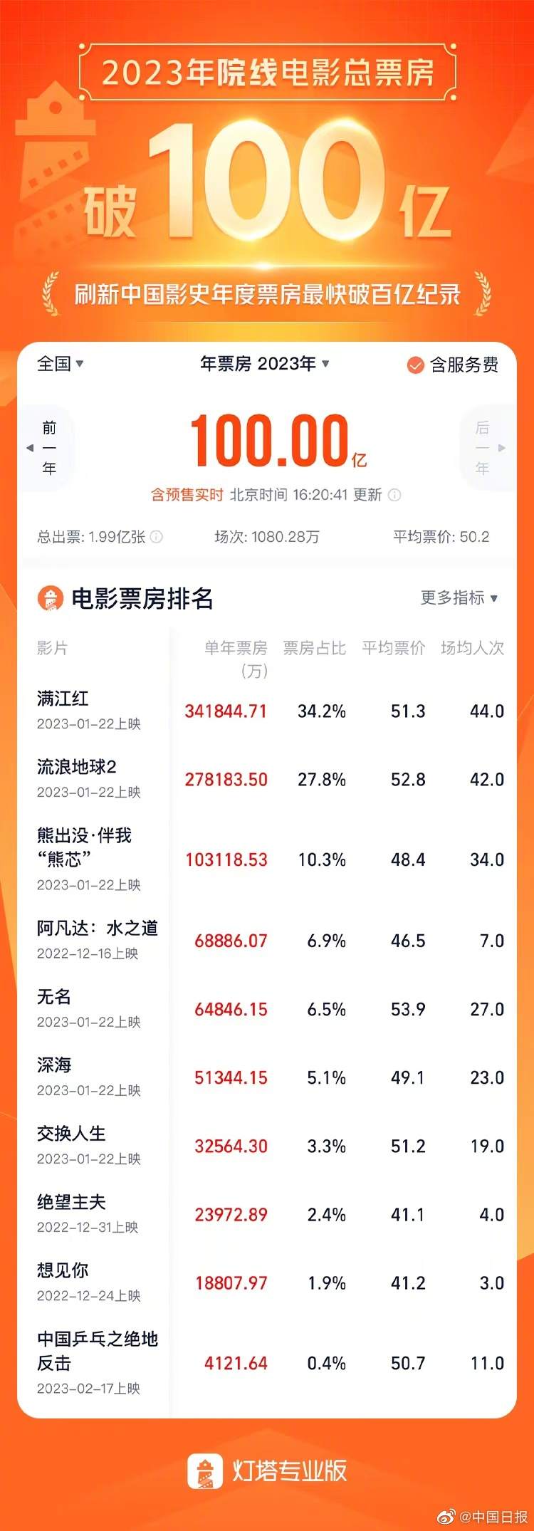 2023年度總票房破100億