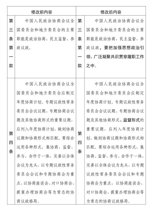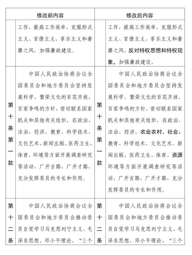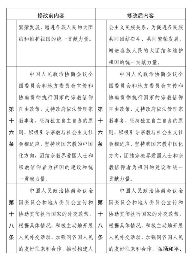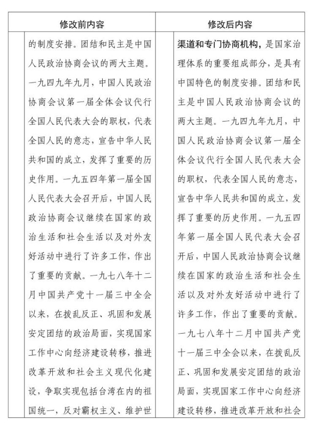 中國人民政治協(xié)商會議章程 修改前后內(nèi)容對照表