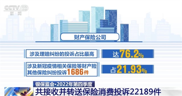 2022年第四季度,中國銀保監(jiān)會及其派出機(jī)構(gòu)共接收并轉(zhuǎn)送保險(xiǎn)消費(fèi)投訴22189件。其中,涉及財(cái)產(chǎn)保險(xiǎn)公司、人身保險(xiǎn)公司的投訴分別占投訴總量的34.65%和65.35%。