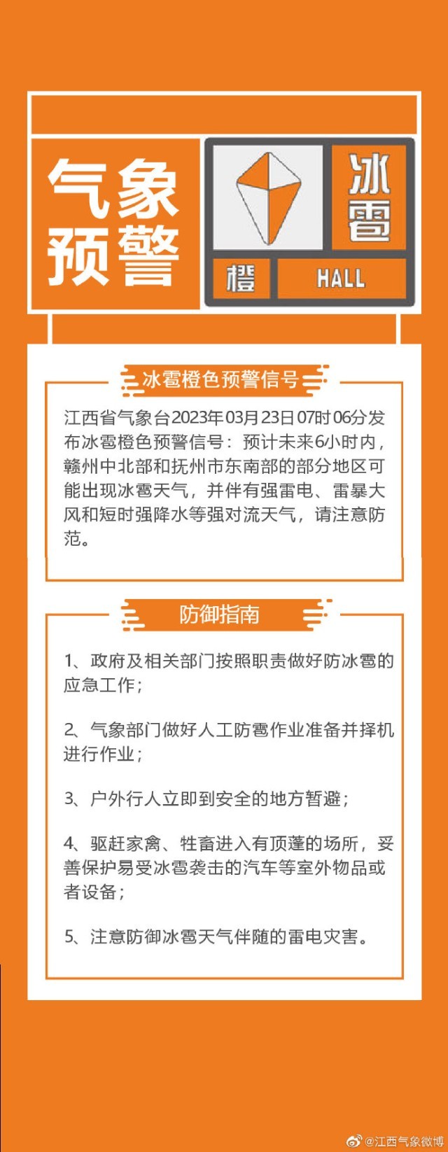 江西省氣象臺(tái)發(fā)布冰雹橙色預(yù)警