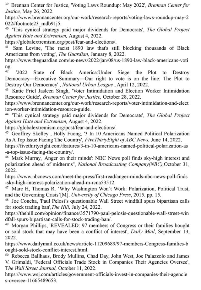 “黑金”捐贈(zèng)暗中操控選舉走向?!昂诮稹币恢痹跓o(wú)形地左右美國(guó)選舉。布倫南司法中心2022年11月16日發(fā)表文章指出,四個(gè)與黨派結(jié)盟的“黑金”團(tuán)體通過(guò)向姐妹超級(jí)政治行動(dòng)委員會(huì)捐款或購(gòu)買廣告等方式,在2022年中期選舉周期注入了近3億美元的“黑金”,還有另外數(shù)百個(gè)政治上活躍的團(tuán)體向選舉注入了秘密資金。(注36)英國(guó)《衛(wèi)報(bào)》網(wǎng)站2022年8月29日發(fā)表題為《數(shù)十億美元“黑金”正在影響美國(guó)政治》的文章披露,一位億萬(wàn)富翁秘密轉(zhuǎn)移16億美元給一個(gè)支持共和黨的政治團(tuán)體,這是美國(guó)歷史上被曝光的最大一筆“黑金”。2020年,有價(jià)值超過(guò)10億美元的“黑金”繞過(guò)薄弱的信息披露規(guī)則涌入美國(guó)大選。這種情況在2022年的中期選舉中更加嚴(yán)重,支持兩黨參選國(guó)會(huì)議員的主要超級(jí)政治行動(dòng)委員會(huì)都是由不需要披露捐助者的匿名“黑金”團(tuán)體資助的。(注37)“黑金”暗中俘獲美國(guó)政黨和政府,廣大選民淪為政治游戲的工具。
