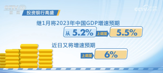 央視網(wǎng)消息:今年以來,國際機構紛紛上調中國經(jīng)濟增長預期。投資銀行高盛繼1月將2023年中國GDP增速預期從5.2%上調至5.5%后,近日又將增速預期上調至6%。據(jù)國際貨幣基金組織測算,中國經(jīng)濟的強勁反彈意味著將在今年貢獻全球經(jīng)濟增長的約三分之一,將為世界經(jīng)濟帶來強勁的拉動作用。