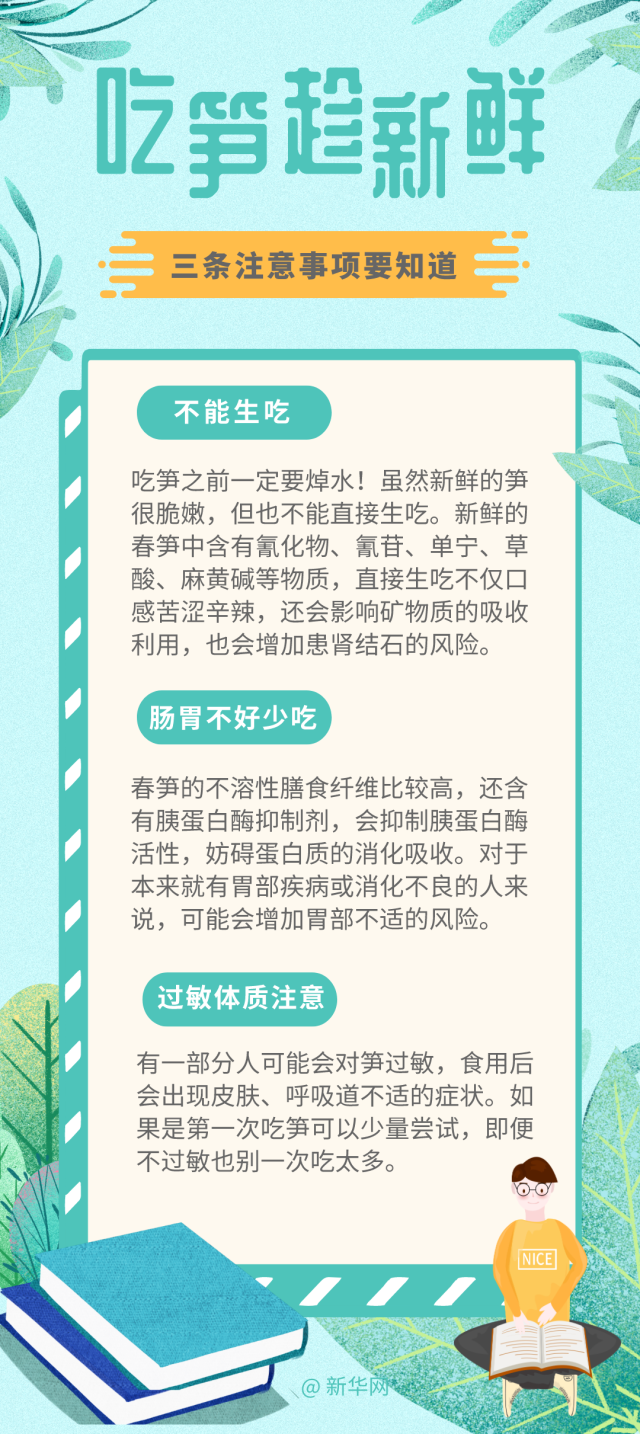 近日“男子貪吃春筍后嘔血又暈厥”的新聞引發(fā)關(guān)注。春季吃筍正當(dāng)時(shí),但春筍吃不對(duì)也會(huì)帶來(lái)健康風(fēng)險(xiǎn)。春筍為啥好吃?又該如何保存?有哪些食用禁忌?今天的春日健康帖帶大家來(lái)了解。