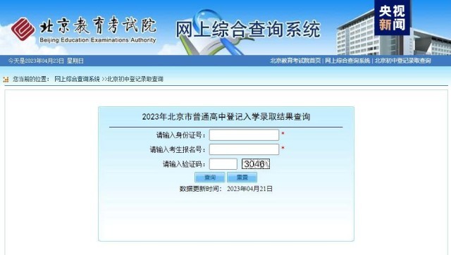4月22日,北京教育考試院公布了今年本市普通高中登記入學(xué)錄取結(jié)果。報(bào)名學(xué)生可通過考試院網(wǎng)站,輸入身份證號和考生報(bào)名號查詢。