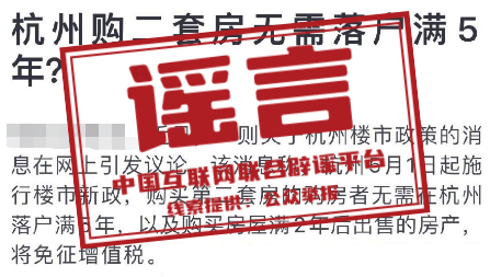 謠言:杭州購(gòu)二套房無(wú)需落戶滿5年?