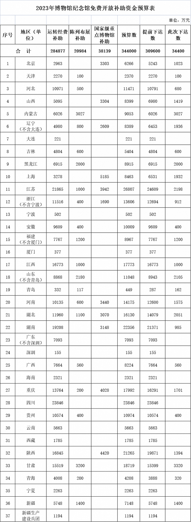 財(cái)政部:2023年博物館紀(jì)念館免費(fèi)開放補(bǔ)助資金預(yù)算下達(dá)