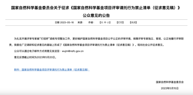 國(guó)家自然科學(xué)基金項(xiàng)目評(píng)審請(qǐng)托行為禁止清單公開征求意見