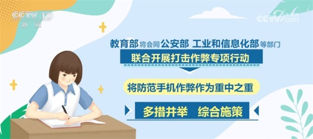 同時(shí),會(huì)同公安部、工業(yè)和信息化部等部門(mén)聯(lián)合開(kāi)展打擊作弊專(zhuān)項(xiàng)行動(dòng),將防范手機(jī)作弊作為重中之重,多措并舉、綜合施策,指導(dǎo)各地強(qiáng)化人防、物防、技防等措施,嚴(yán)格入場(chǎng)安檢規(guī)范,強(qiáng)化考場(chǎng)監(jiān)考巡考,嚴(yán)厲打擊利用手機(jī)等通信設(shè)備作弊行為。對(duì)于在高考中存在作弊行為的考生和人員,將依法依規(guī)嚴(yán)肅處理,堅(jiān)決維護(hù)高考的公平公正。