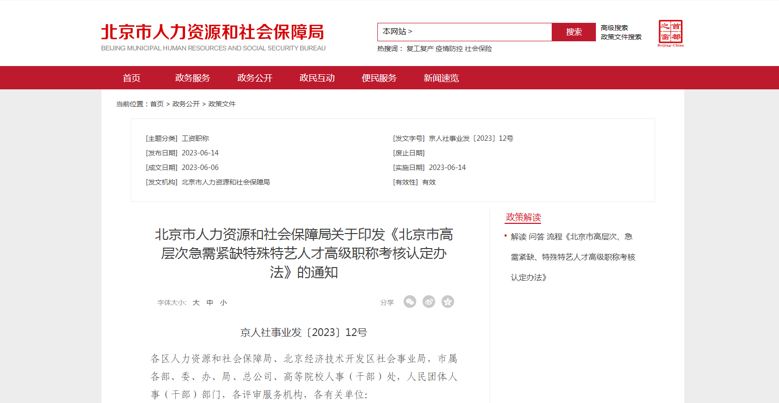 6月14日,北京市人力資源和社會(huì)保障局發(fā)布《關(guān)于進(jìn)一步加強(qiáng)和改進(jìn)職稱工作的通知》及相關(guān)配套措施,明確對高層次、急需緊缺人才等不拘一格“評”人才。