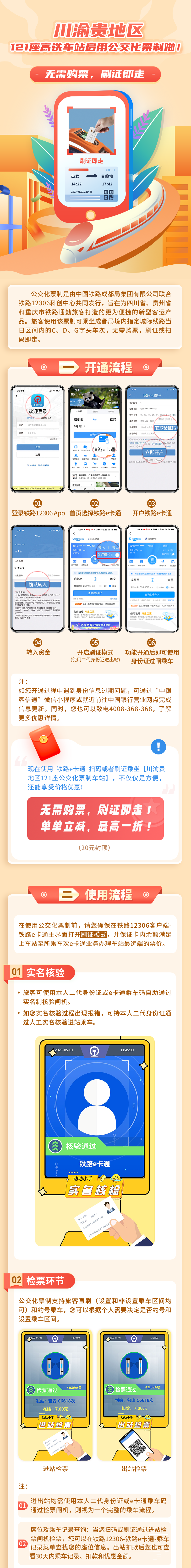 為進(jìn)一步提升通勤旅客出行體驗(yàn),中國(guó)鐵路成都局集團(tuán)有限公司管內(nèi)的川渝貴地區(qū)121座高鐵車站啟用公交化票制。已開(kāi)通鐵路e卡通的旅客在鐵路12306客戶端-鐵路e卡通主頁(yè),啟用刷證模式,即可使用二代身份證或e卡通乘車碼,實(shí)現(xiàn)無(wú)需購(gòu)票,刷證或掃碼即走。