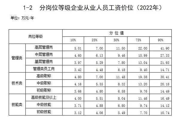 分崗位等級企業(yè)從業(yè)人員工資價位(2022年)。來自人社部網(wǎng)站