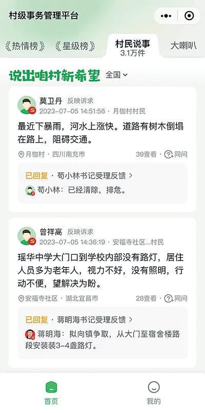 “老百姓把遇到的問題發(fā)布,我們看到后及時(shí)回復(fù)、解決,大大提高了工作效率?!笔孳娬f,他已經(jīng)養(yǎng)成習(xí)慣,每天都會(huì)看看村民在小程序說了啥事。