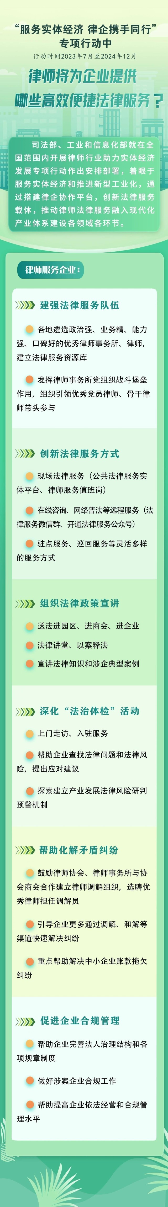 日前,司法部、工業(yè)和信息化部聯(lián)合印發(fā)《“服務(wù)實(shí)體經(jīng)濟(jì) 律企攜手同行”專項(xiàng)行動(dòng)方案》,就在全國范圍內(nèi)開展律師行業(yè)助力實(shí)體經(jīng)濟(jì)發(fā)展專項(xiàng)行動(dòng)作出安排部署。
