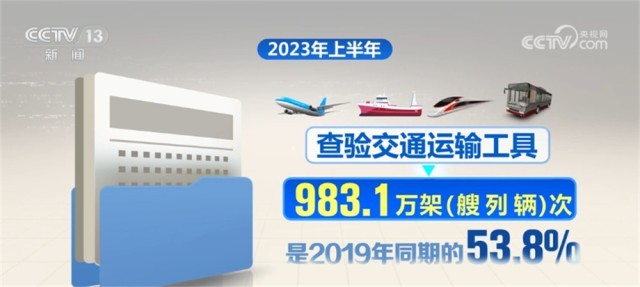 據(jù)國家移民管理局統(tǒng)計,2023年上半年,全國移民管理機構(gòu)共查驗出入境人員1.68億人次,是2019年同期的48.8%,其中內(nèi)地居民8027.6萬人次,港澳臺居民7490.3萬人次,外國人843.8萬人次(不含邊民);查驗交通運輸工具983.1萬架(艘、列、輛)次,是2019年同期的53.8%,其中,飛機20.4萬架次、船舶19.1萬艘次、火車4.4萬列次、汽車939.2萬輛次。