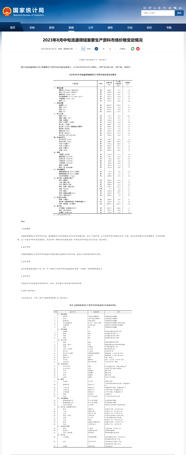 央視網(wǎng)消息:國(guó)家統(tǒng)計(jì)局?jǐn)?shù)據(jù)顯示,2023年8月中旬與8月上旬相比,25種產(chǎn)品價(jià)格上漲,23種下降,2種持平。其中,生豬(外三元)價(jià)格報(bào)17.1元/千克,環(huán)比下降1.2%。