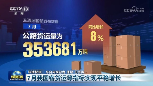 353681萬噸。交通運(yùn)輸部發(fā)布數(shù)據(jù),7月,公路貨運(yùn)量為353681萬噸,同比增長8%;水路貨運(yùn)量為78964萬噸,同比增長6.9%。客運(yùn)方面,7月公路客運(yùn)量為40798萬人,同比增長19.3%;水路客運(yùn)量為3034萬人,同比增長78.3%。