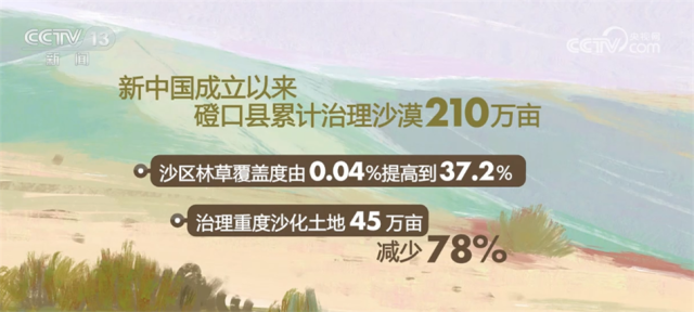 數(shù)據(jù)顯示,新中國成立以來,磴口縣累計(jì)治理沙漠210萬畝,沙區(qū)林草覆蓋度由0.04%提高到37.2%,治理重度沙化土地45萬畝,減少78%,向黃河年輸沙量減少到370萬噸,降低94.7%,沙漠治理呈現(xiàn)出“整體好轉(zhuǎn)、改善加速”的良好態(tài)勢,也因此形成了防沙治沙“磴口模式”。