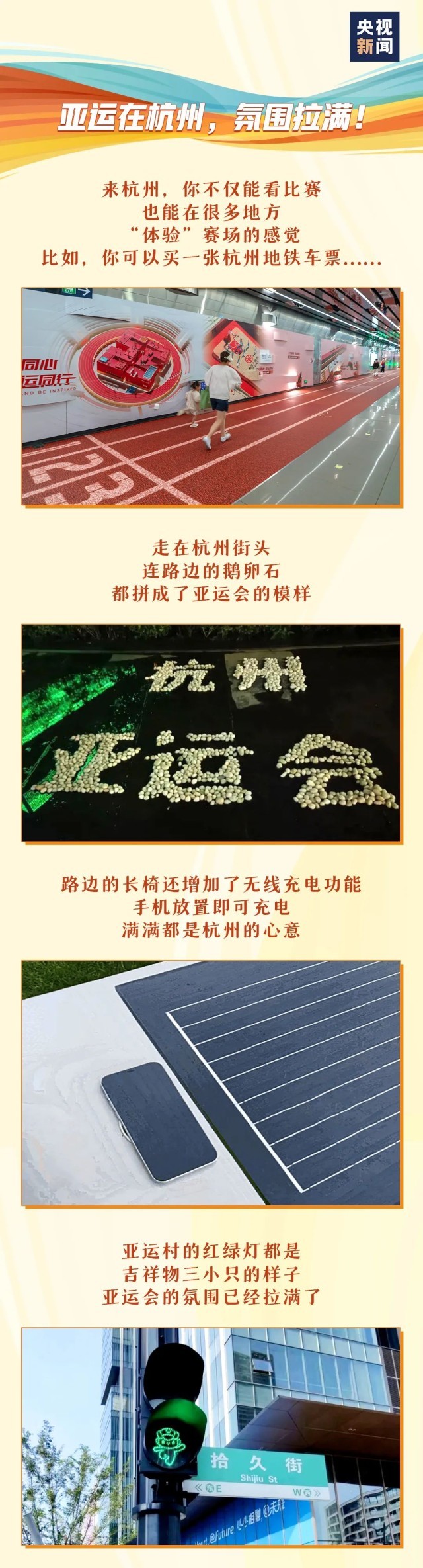 3天以后(9月23日),杭州第19屆亞運(yùn)會(huì)即將開(kāi)幕。亞運(yùn)會(huì)的腳步聲越來(lái)越近,杭州的亞運(yùn)氛圍越來(lái)越濃!