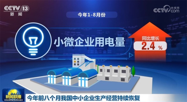 最新數(shù)據(jù)顯示,今年1—8月份,小微企業(yè)用電量同比增長2.4%。其中,“小巨人”企業(yè)、專精特新中小企業(yè)用電量同比分別增長12.7%、9.6%。隨著一系列穩(wěn)增長政策措施集中發(fā)力,8月份,中小企業(yè)信心指數(shù)達61.9%,采購指數(shù)50.6%,分別較7月份上升0.7個百分點、0.3個百分點。