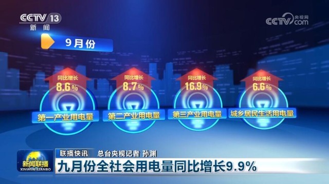 央視網(wǎng)消息:據(jù)今天(10月16日)國家能源局公布的最新消息,9月份全社會用電量同比增長9.9%,不斷攀升的電力數(shù)據(jù)從側(cè)面反映出國民經(jīng)濟活力充沛。另外,我國在金融證券管理、能源開發(fā)、交通基建等多個領(lǐng)域發(fā)展勢頭良好,各類展會運行順暢、亮點紛呈。