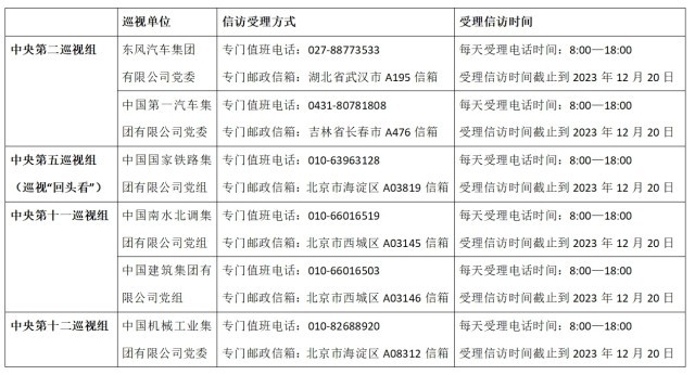 截至目前,中央巡視組已進駐6家單位,并公布了信訪聯(lián)系方式。