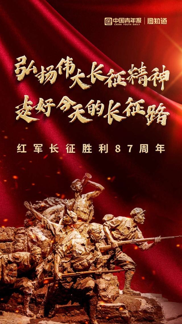 從1934年10月至1936年10月,紅軍第一、第二、第四方面軍和第二十五軍進行了偉大的長征。中國共產(chǎn)黨領(lǐng)導(dǎo)紅軍,以非凡的智慧和大無畏的英雄氣概,戰(zhàn)勝千難萬險,付出巨大犧牲,勝利完成震撼世界、彪炳史冊的長征。紀(jì)念紅軍長征勝利87周年,致敬革命先輩,偉大長征精神始終閃耀著火熱的光芒!